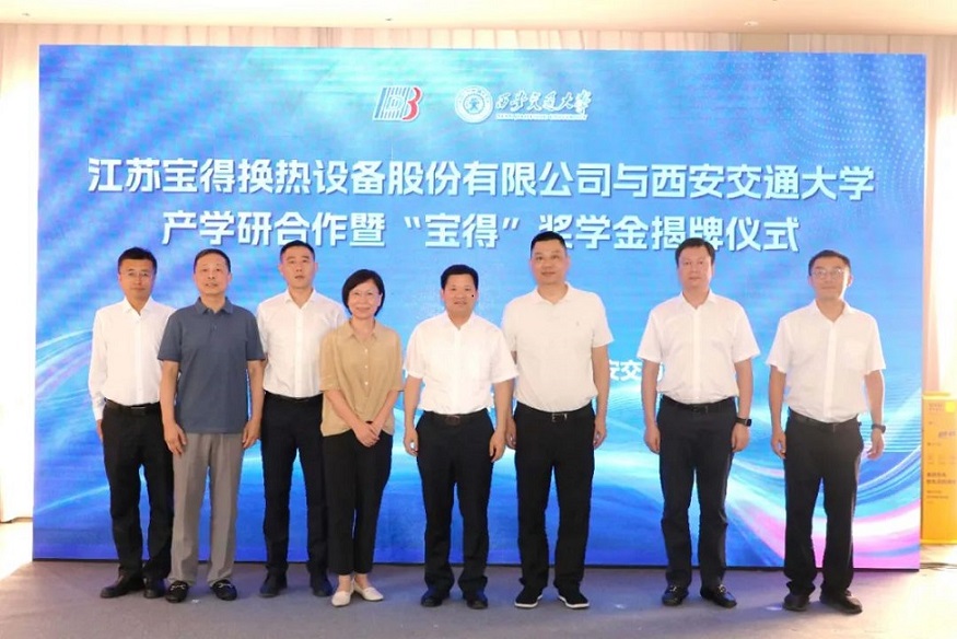 查看詳細 >>8月18日下午,江蘇寶得換熱設備股份有限公司與西安交通大學簽署產學研合作協(xié)議及“寶得”獎學金揭牌儀式在江陰成功舉行。 出席儀式的領導與嘉賓包括:江陰市人民政府副市長季震,西安交通大學校長助理黃...